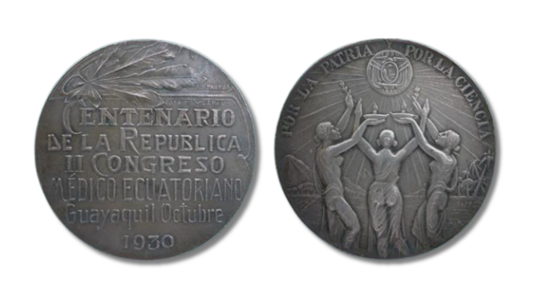 II Congreso Médico Ecuatoriano, Guayaquil, octubre de 1930, conmemoración del Centenario de la República. | Lema: “Por la patria, por la ciencia”.