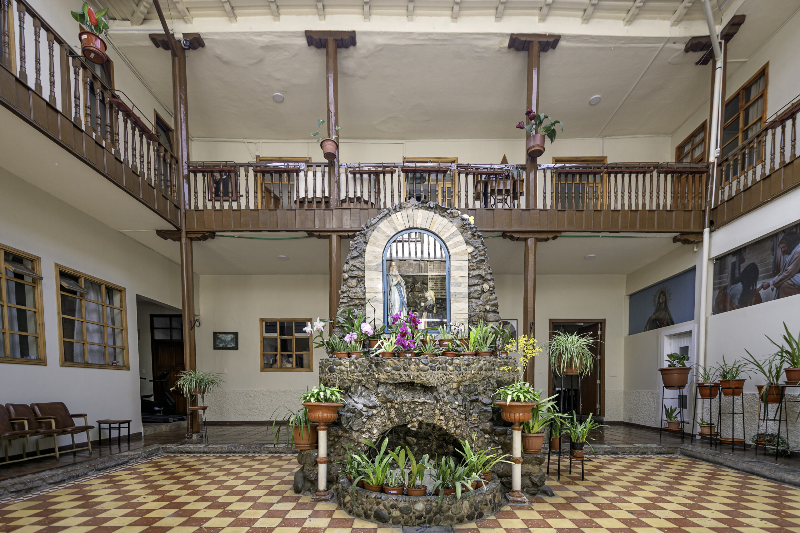 Gruta al interior del edificio, casa de Emiliano J. Crespo, actual Colegio de las Madres Marianitas, Cuenca.