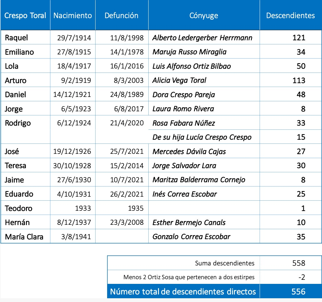 Descendientes de Emiliano J. Crespo y Dolores Toral Vega